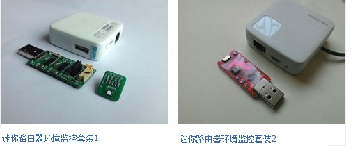 B、迷你路由器环境监控套装2:迷你路由器op+红色的usb dongle,可以进行温湿度监控。