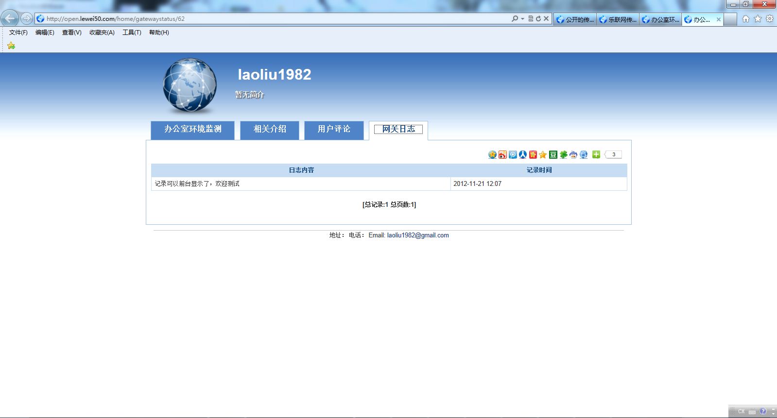 对于用户公开的log信息,通过乐联网前台界面可以进行显示了。可以把乐联网作为一个用户log记录的存储平台了。