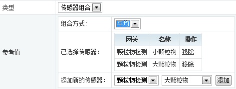 以上就设置完成,当然还有更复杂的逻辑关系设置,在“类型”里面除了“单一传感器”,还有“传感器组合”,里面的组合方式有“平均”,“求和”等,可以选择多个传感器,这里就不详细介绍了,大家可以自己去研究。